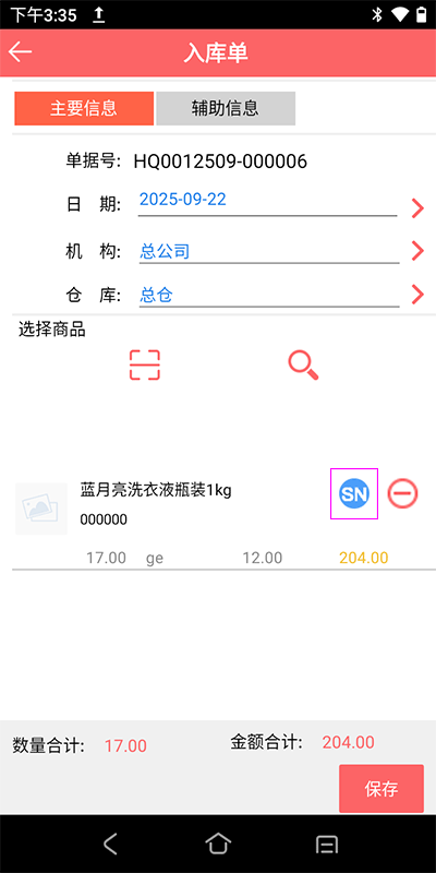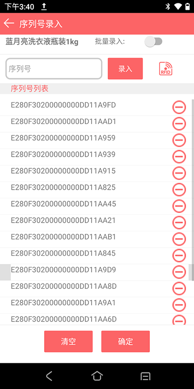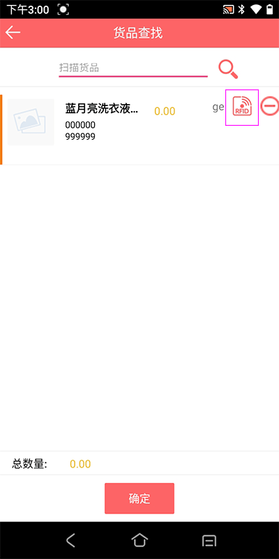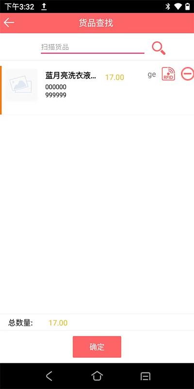 下面以安卓RFID PDA入库单为例,打开启网分销app入库单,扫描货品,如下图: