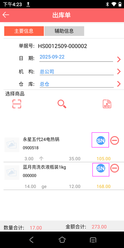 下面以安卓RFID PDA出库单为例,打开启网分销app出库单,如下图: