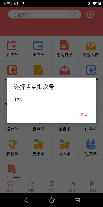 下面以安卓RFID PDA盘点单为例,打开启网分销app盘点单,选择盘点批次号,如下图: