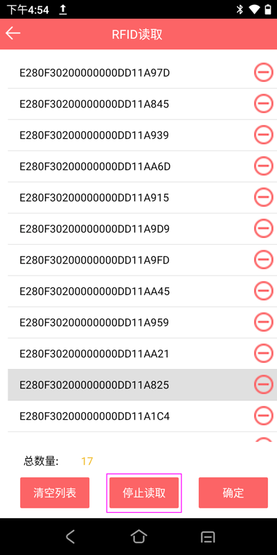 确认数量无误后,点击“停止读取”按钮,如下图所示: