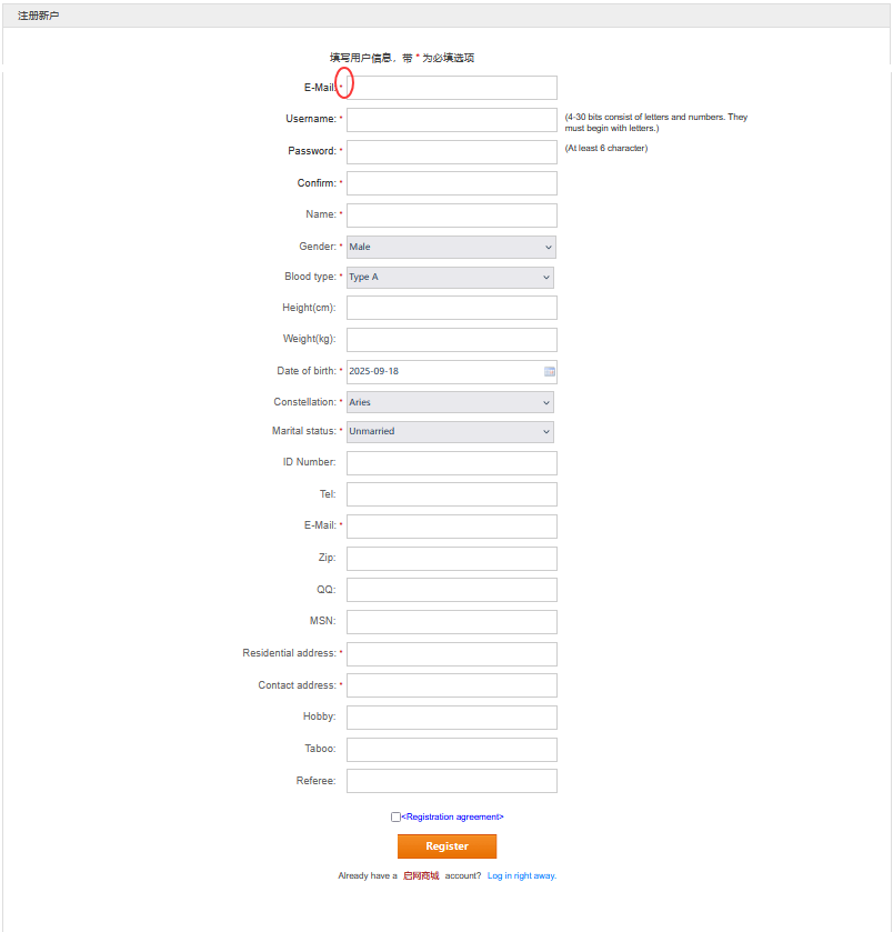 The order of items in the list can be adjusted by drag-and-drop. The front-end registration page will determine which fields members need to fill in during registration based on the configured registration items, and these fields will be displayed in the set order. The effect is shown below:
