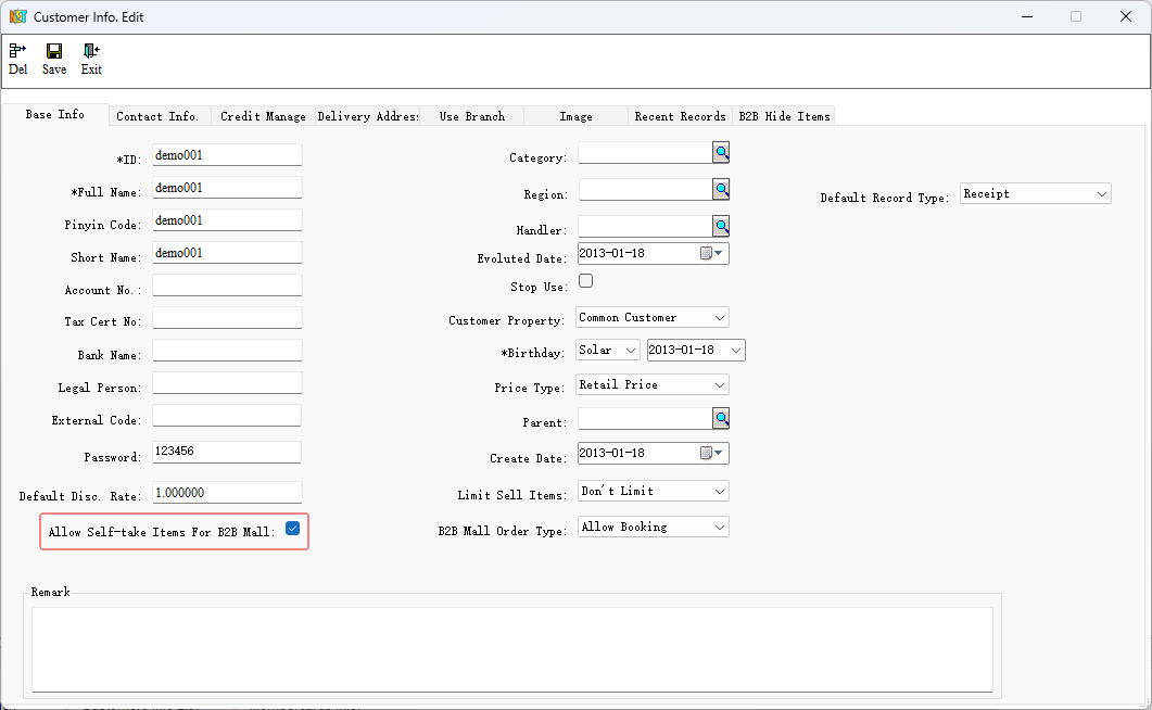 If you need to avoid freight for a single customer, please open the"open network client",set in the"customer data",and select the "B2B