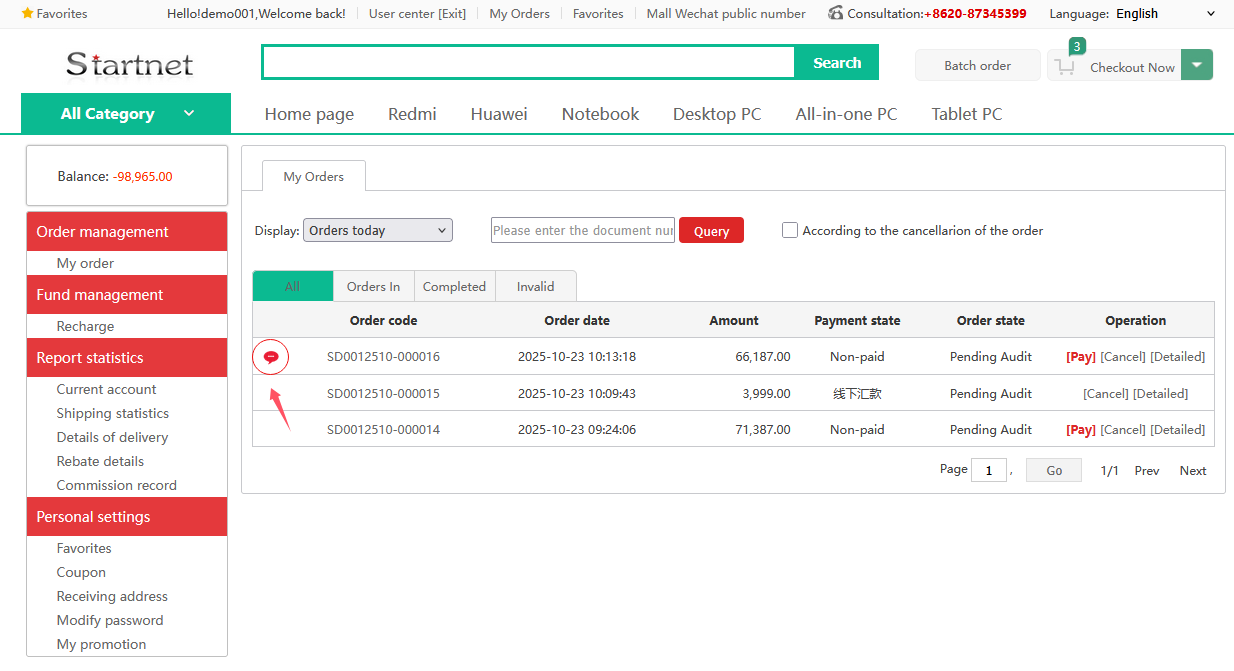 2. Customers can view merchant messages and reply to them on the "My Orders" page, as shown in the figure below: