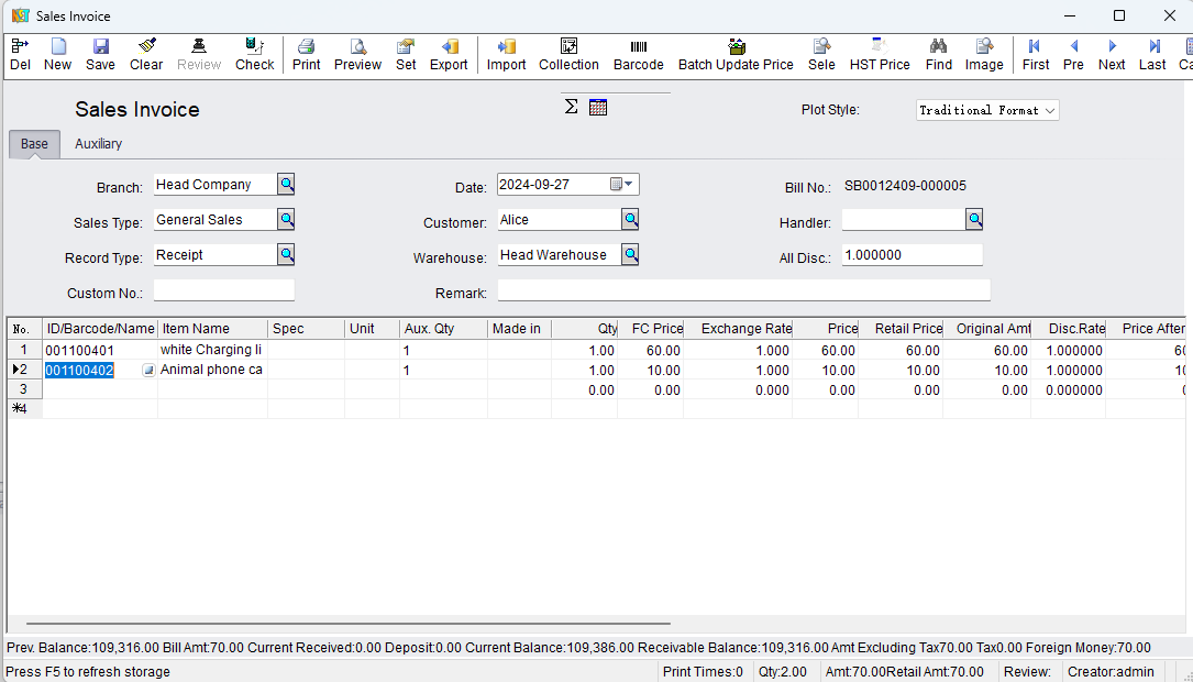 Sales invoice is an essential part of the business process. This indicates that the ownership of the goods has been transferred from our company to the customer, and our company has formed an account receivable to the customer.The sales invoicing of this system can handle different business processes, direct sales andNegative inventory sales and other complex situations.