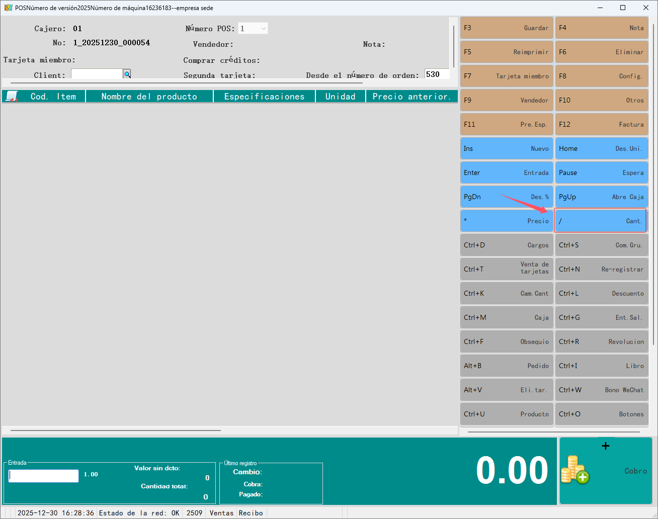 Nota: ① Los operadores no autorizados no pueden utilizar la función de modificación del precio unitario. ② Algunos productos especiales pueden fijarse a precios unitarios no modificables.