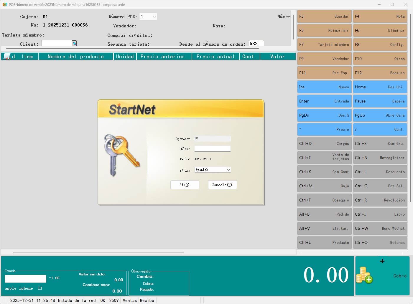 1. Entrada en el estado bloqueado: presione la tecla "Bloqueo (F2)" directamente en la interfaz frontal del POS, y el sistema entrará inmediatamente en el estado bloqueado. La pantalla se volverá negra y todas las funciones de ventas se bloquearán temporalmente para evitar que otros funcionen.