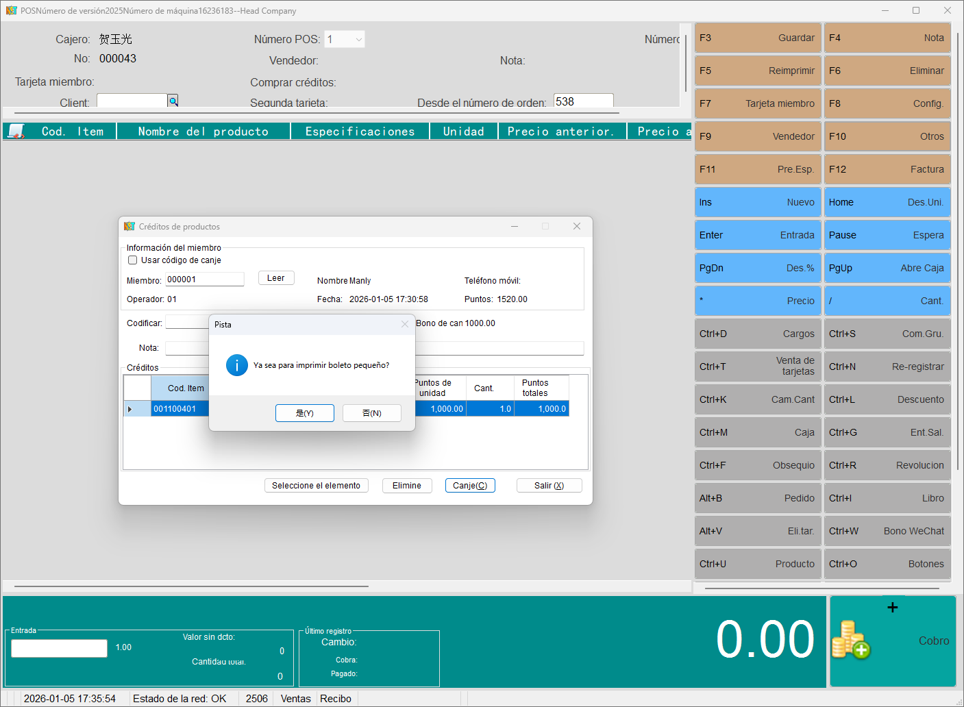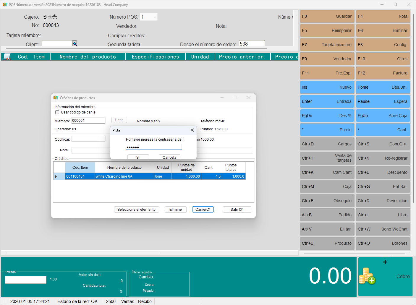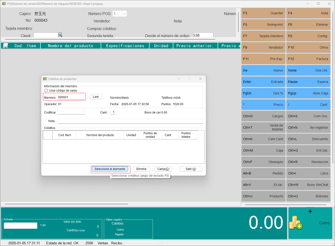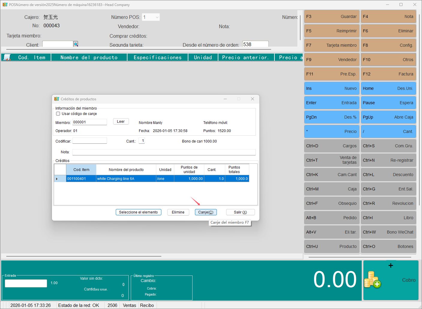 Introduzca el número de la tarjeta de membresía y seleccione el elemento de canje, como se muestra en la figura a continuación: