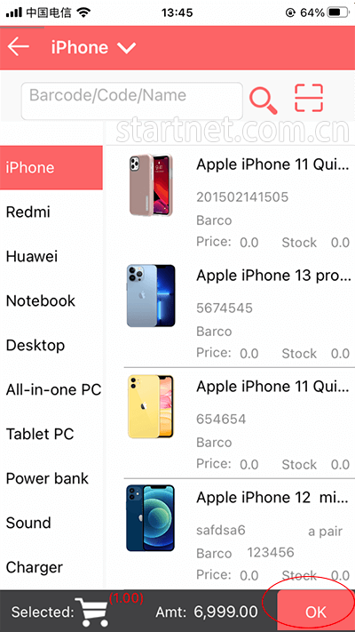 | | Enable the camera on your phone, scan the barcode or QR code of the product, and quickly add the product to the order. |