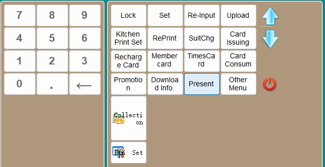 5. The lower right area is the functional button zone, where you can navigate through pages using the up and down arrows. Below is an example using the gift-giving function: