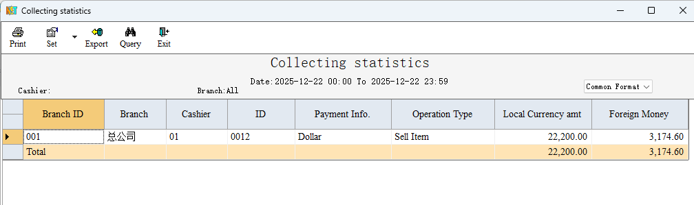 4. You can view the summary of retail document browsing, collection statistics table, and cashier daily report. Firstly, set the "Foreign Currency Amount" column in the "Settings" button of the report, and check the "Foreign Currency Amount" column in printing, as shown in the following figure: