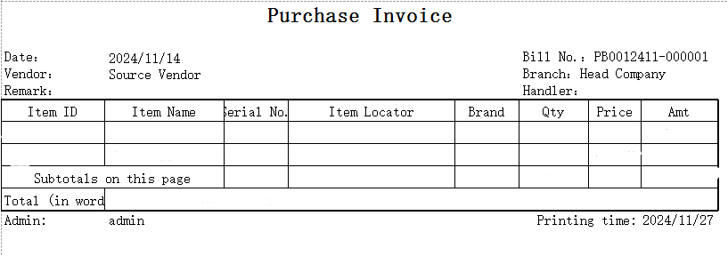 The POS machine is unplugged from the network and switched to manual document upload. The backend operations of other sites can only be suspended for computer input. You can use EXCEL to register the purchase receipt or sales receipt first. After the server is repaired, you can import the document back into the system through EXCEL import. The EXCEL format is as follows: